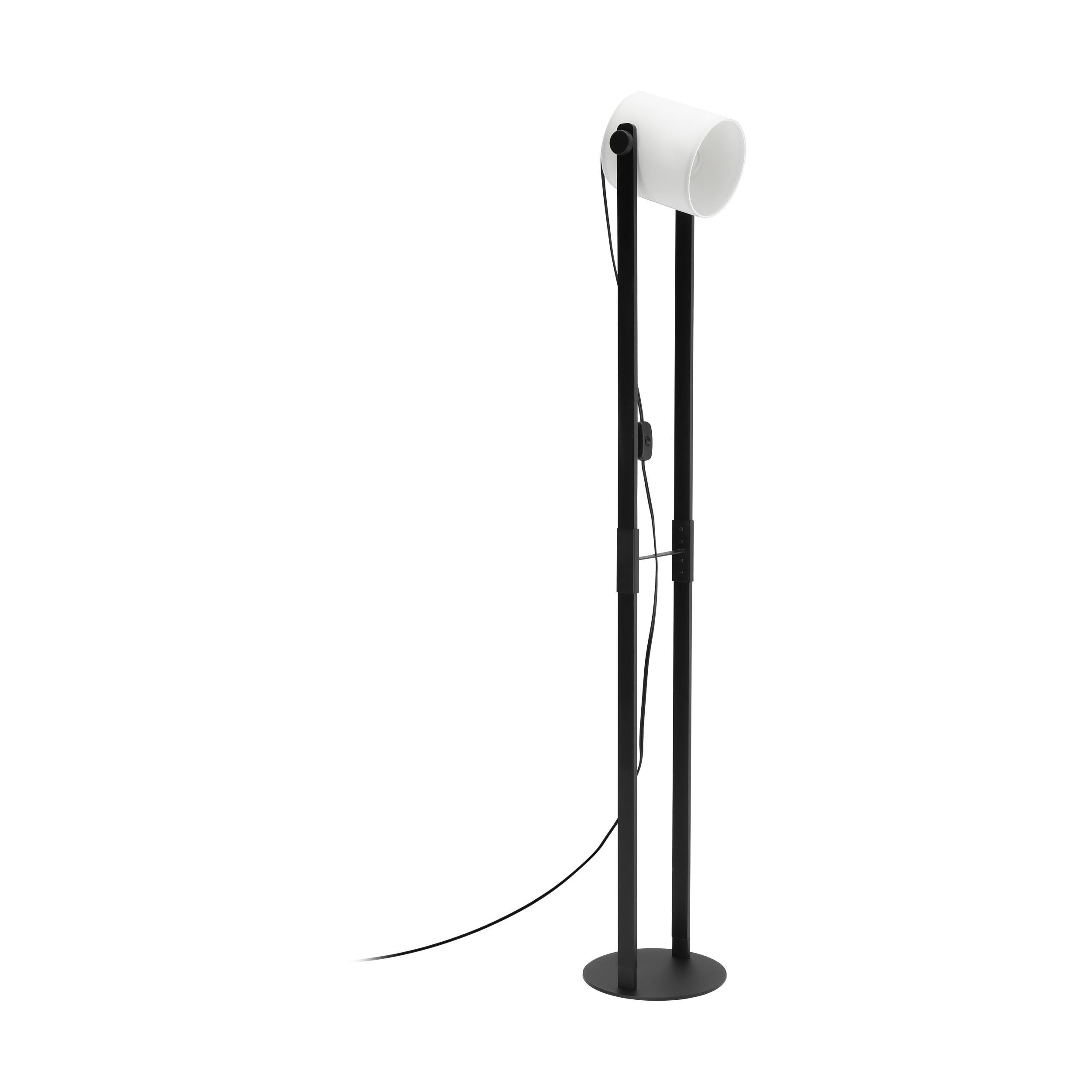 Cette lampe de plancher noire présente une structure élancée de style échelle avec un abat-jour en tissu blanc diffusant une lumière douce et chaleureuse. Son design minimaliste en fait un accent parfait pour les salons, chambres ou coins lecture modernes. La tête orientable permet de diriger la lumière selon vos besoins, alliant ainsi fonctionnalité et élégance dans un seul luminaire.