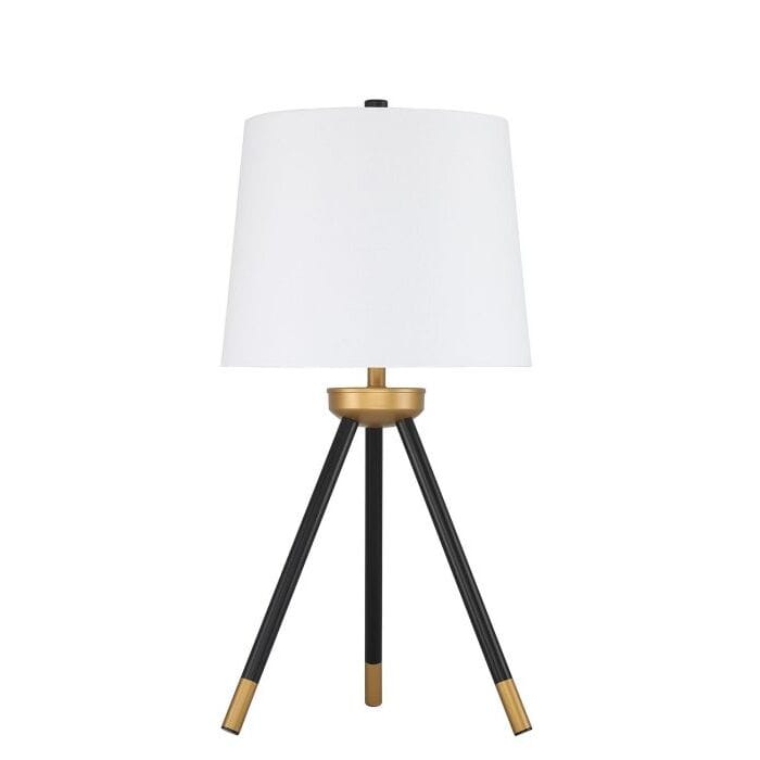 Cette lampe de table allie des détails dorés chaleureux à un trépied noir et un abat-jour blanc inclus. Dimensions : 66 cm (H) x 32 cm (L). Ampoule : 1 x 100 W max., culot moyen (non fournie).