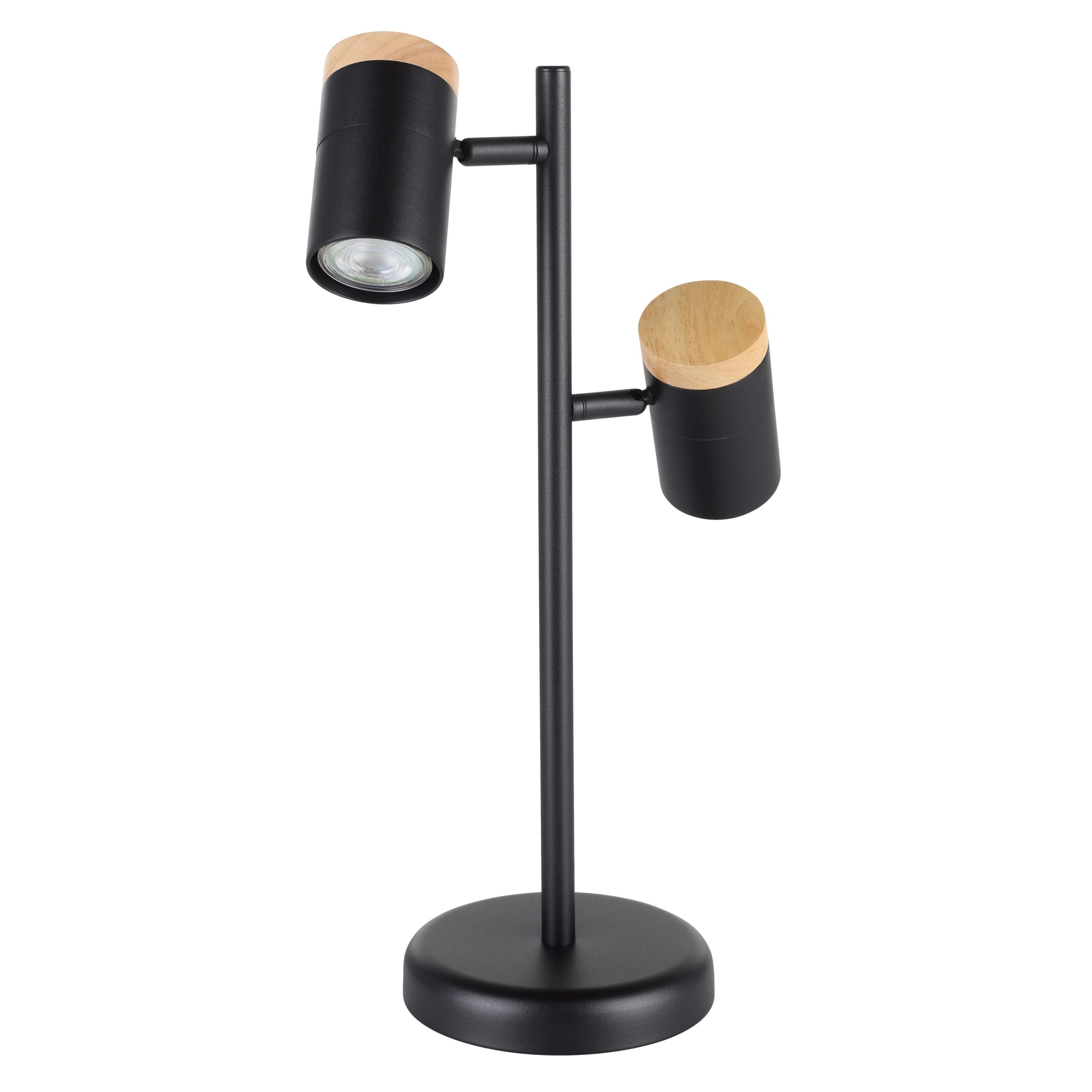 Lampe noire et en bois.